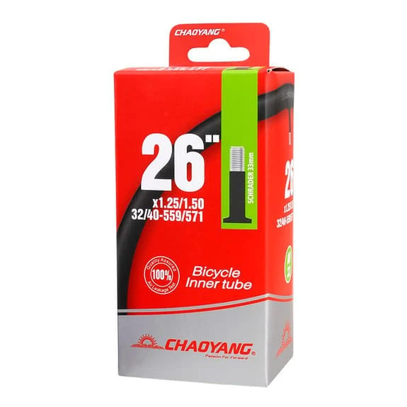 La camera d’aria Chaoyang CYT include il butile fra i materiali di cui è composta ed è progettata per ruote di 26×1.25/1.50. Valvola Schrader.
