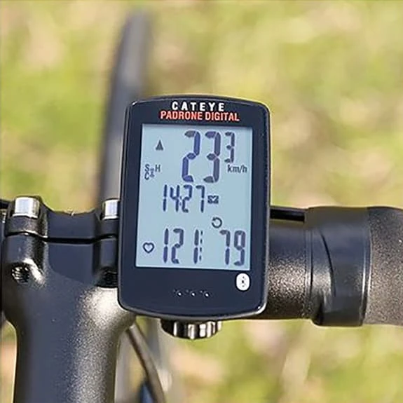 Il contachilometri CatEye Padrone Digital Wireless offre un ampio display a 3 righe con un massimo di quattro schermate di dati ed è anche aggiornabile wireless con un sensore di frequenza cardiaca (opzionale) e di cadenza (opzionale) in modo da poter salvare tutti i dati necessari.
