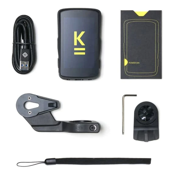 – Include: Hammerhead Karoo 2, sistema di montaggio Hammerhead Karoo 2, adattatore di montaggio a un quarto di giro, chiave a brugola da 2,5 mm, cavo da USB-A a USB-C, cordino di sicurezza, guida introduttiva