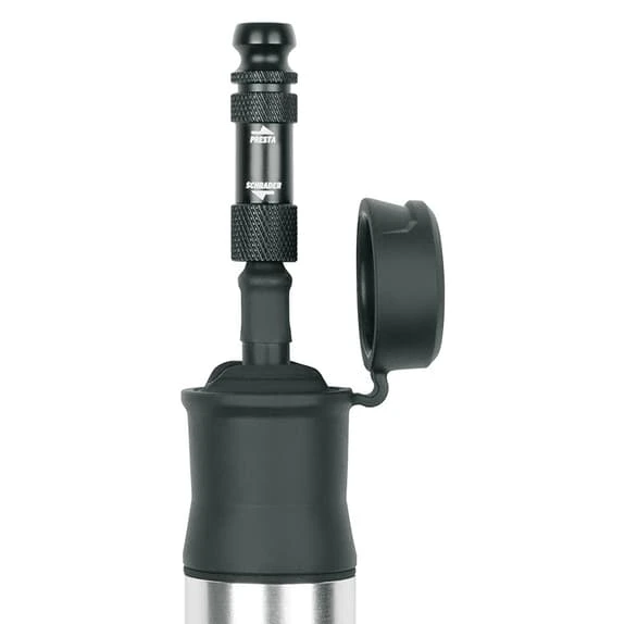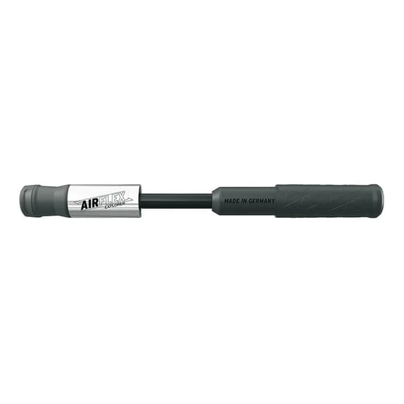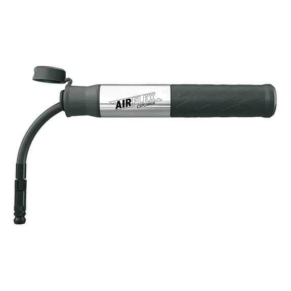 La pompa manuale SKS Airflex Explorer presenta un tubo flessibile immagazzinato nel tubo della pompa, nascosto dal coperchio antipolvere, è avvitato alla testa della valvola con un collegamento completamente sigillato delle valvole AV/SV. La pompa fornisce un gonfiaggio fino a 5 bar/73 PSI. L’impugnatura della pompa è realizzata in una mescola morbida ed è facile da impugnare. La combinazione di materiali come l’alluminio e la plastica di carbonio con il rilievo SKS rende la pompa un must per i ciclisti attenti al design. Il tubo di compressione interno è realizzato in poliammide rinforzata con carbonio. Presenta una maggiore stabilità rispetto alle plastiche convenzionali e il materiale fornisce una densità di parete più sottile.