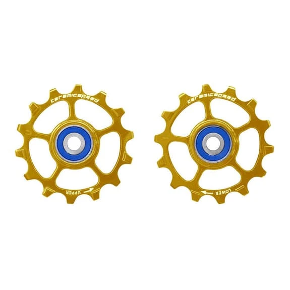 Le pulegge CeramicSpeed SRAM Eagle 14 funzionano con una minore resistenza, che aumenta la potenza trasmessa alla ruota posteriore e anche una maggiore durata, poiché dura più a lungo tra un intervallo di sostituzione e l’altro. Queste ruote sono anche completamente compatibili con il cambio SRAM Eagle AXS. Le pulegge superiore e inferiore presentano un design a denti stretti e larghi. Entrambe presentano 14 denti.